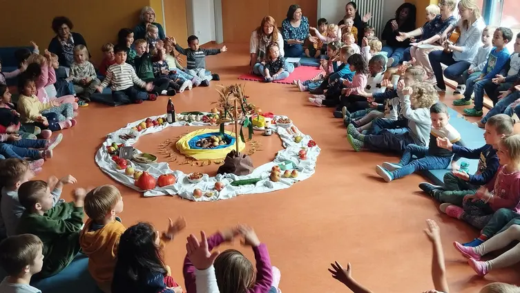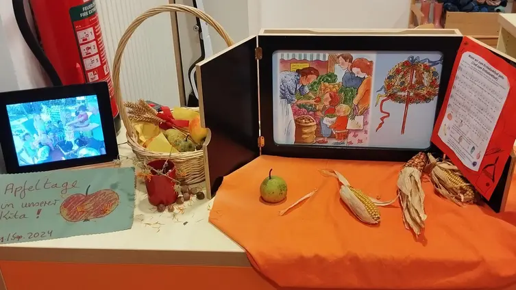 Auch in unseren Morgenkreisen wird zum Thema Apfel gespielt, gesungen und gebastelt.