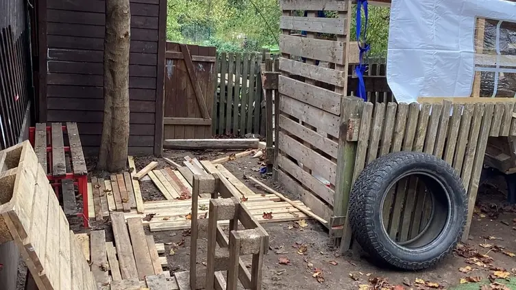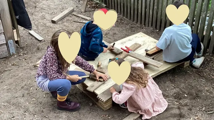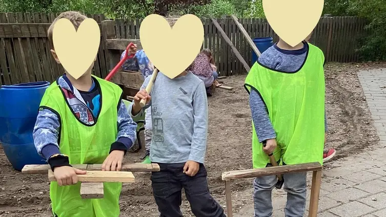 In der nächsten Zeit haben die Kinder die Möglichkeit, auf ihrer Baustelle mit Holz zu konstruieren und ihrer Fantasie freien Lauf zu lassen. Nun soll noch eine Tankstelle dazu entstehen.