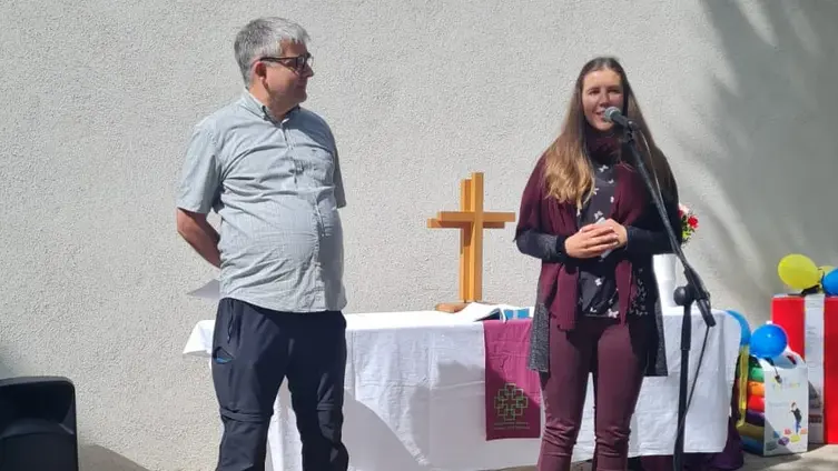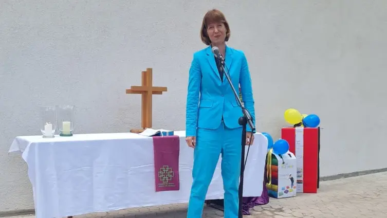 Pfarrerin Inka Gente von der Evangelischen Kirchengemeinde Gräfenhausen-Schneppenhausen hielt eine kurze Andacht, in der sie dem Kita-Team Gottes Segen zusprach.