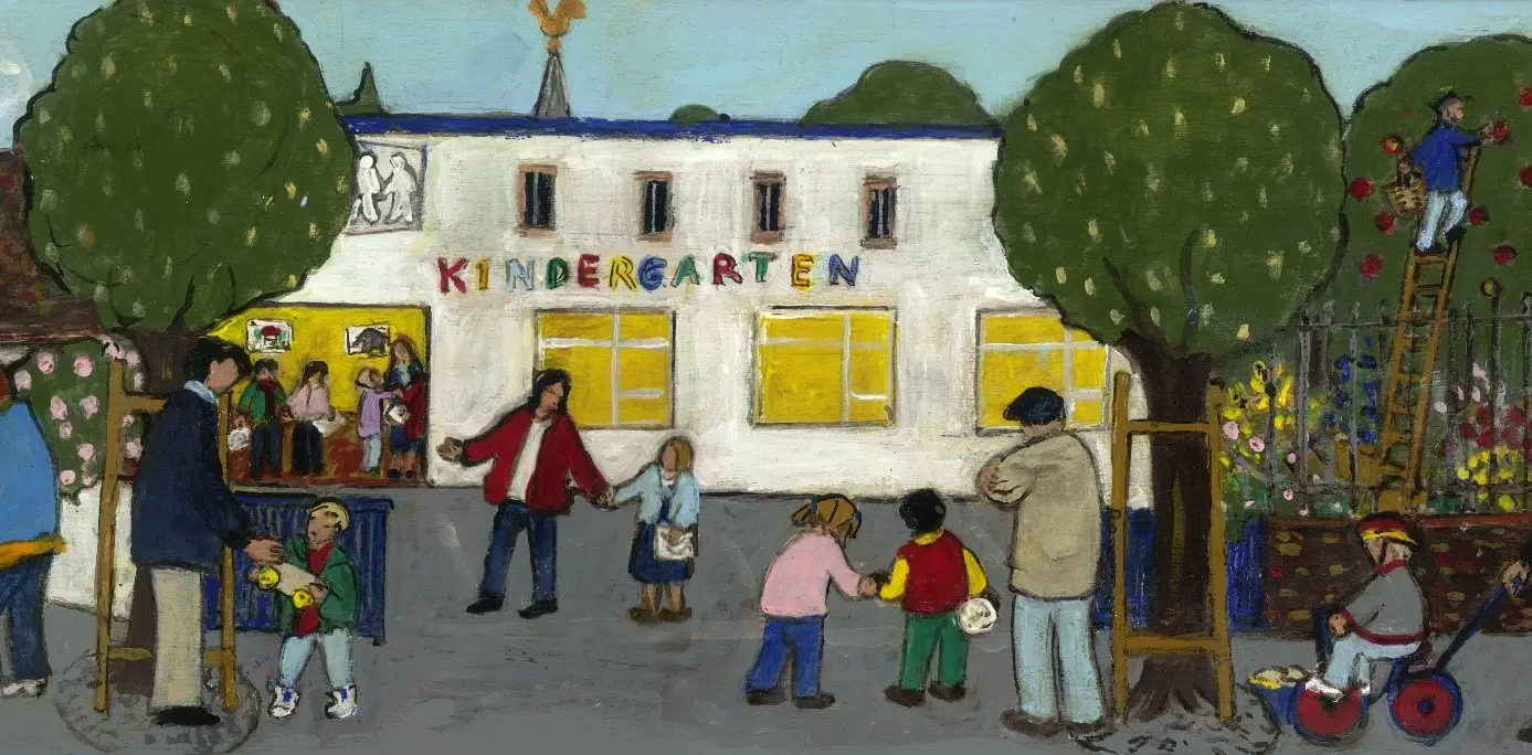 Seit Sommer 2024 freuen wir uns über ein neues Logo für die Kita. Eine Mutter, die Grafikdesignerin ist, hat uns in vielen Gesprächen beraten und über einen langen Zeitraum hinweg begleitet.