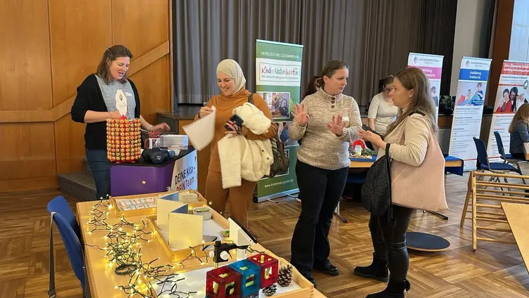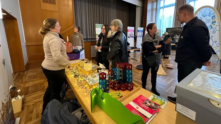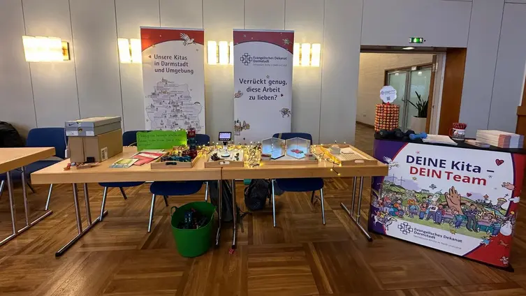 An unserem liebevoll gestalteten Stand konnten Besucher*innen selbst aktiv werden: Beim Forschen und Experimentieren, beim Wahrnehmen mit allen Sinnen und im gemeinsamen Ausprobieren wurde schnell spürbar, worum es uns in unseren Kitas geht – um Neugier, Beziehung und Freude am Lernen. Gleichzeitig informierten wir über unsere Einrichtungen, über Ausbildungs- und Einstiegsmöglichkeiten, Praktika, Qualifizierungswege und konkrete Jobperspektiven in unserer Trägerschaft.